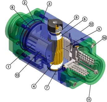 Tork-Mate 890 series actuators meet the latest NAMUR standards, allowing direct or close coupling of NAMUR designed accessories. The pinion interface features a positive, international standard drive for positioners, switches and other accessories. The solenoid interface allows direct acceptance of any NAMUR designed control valves.